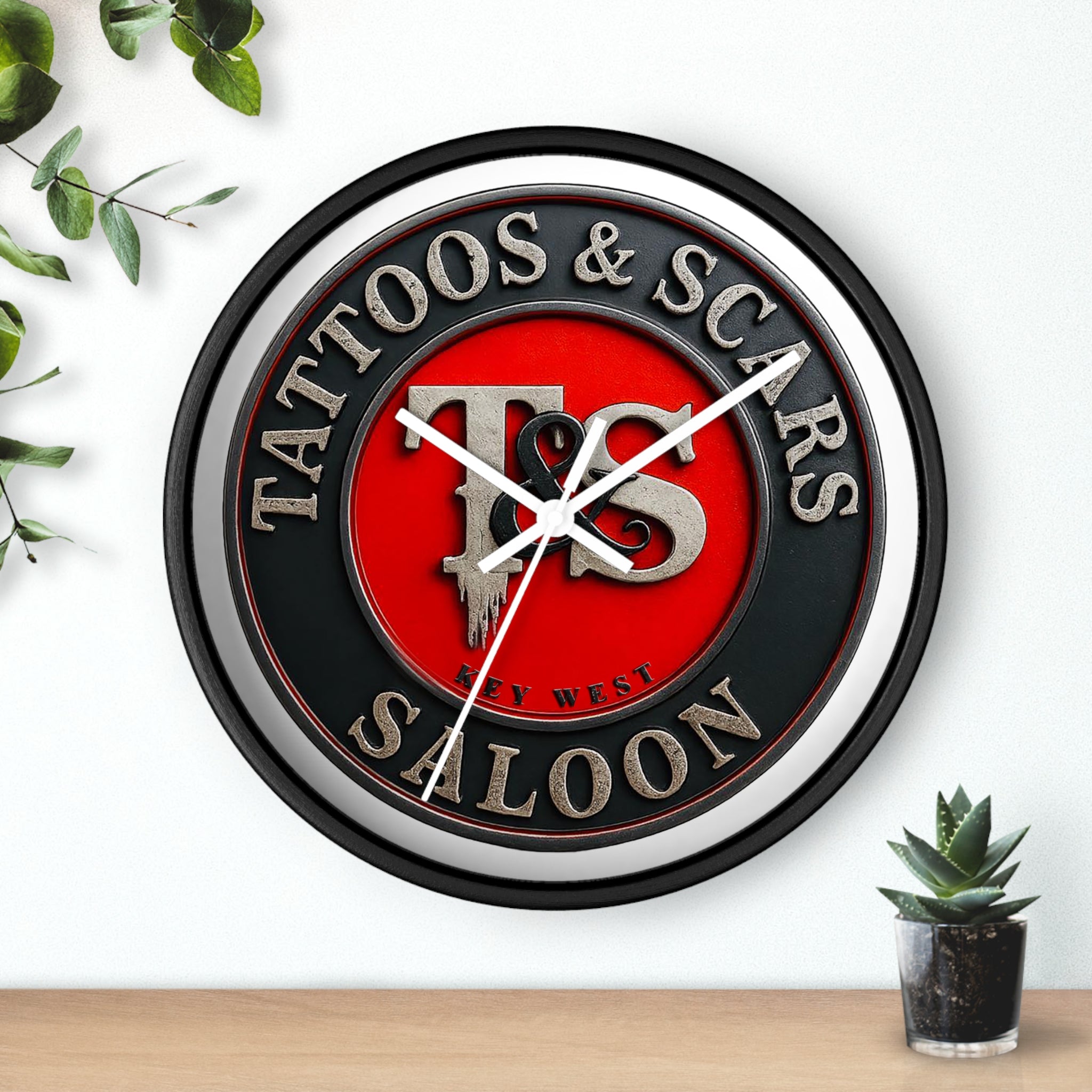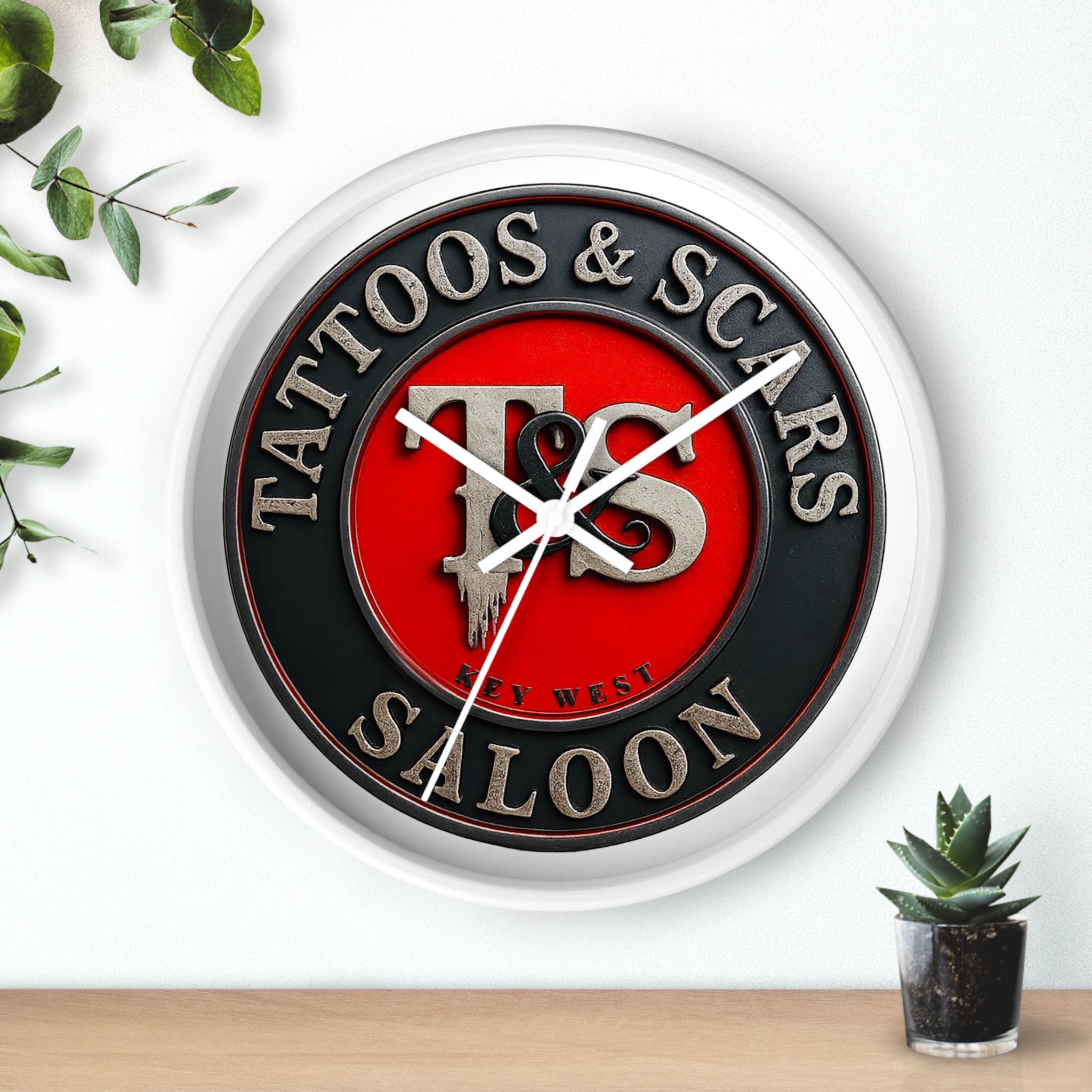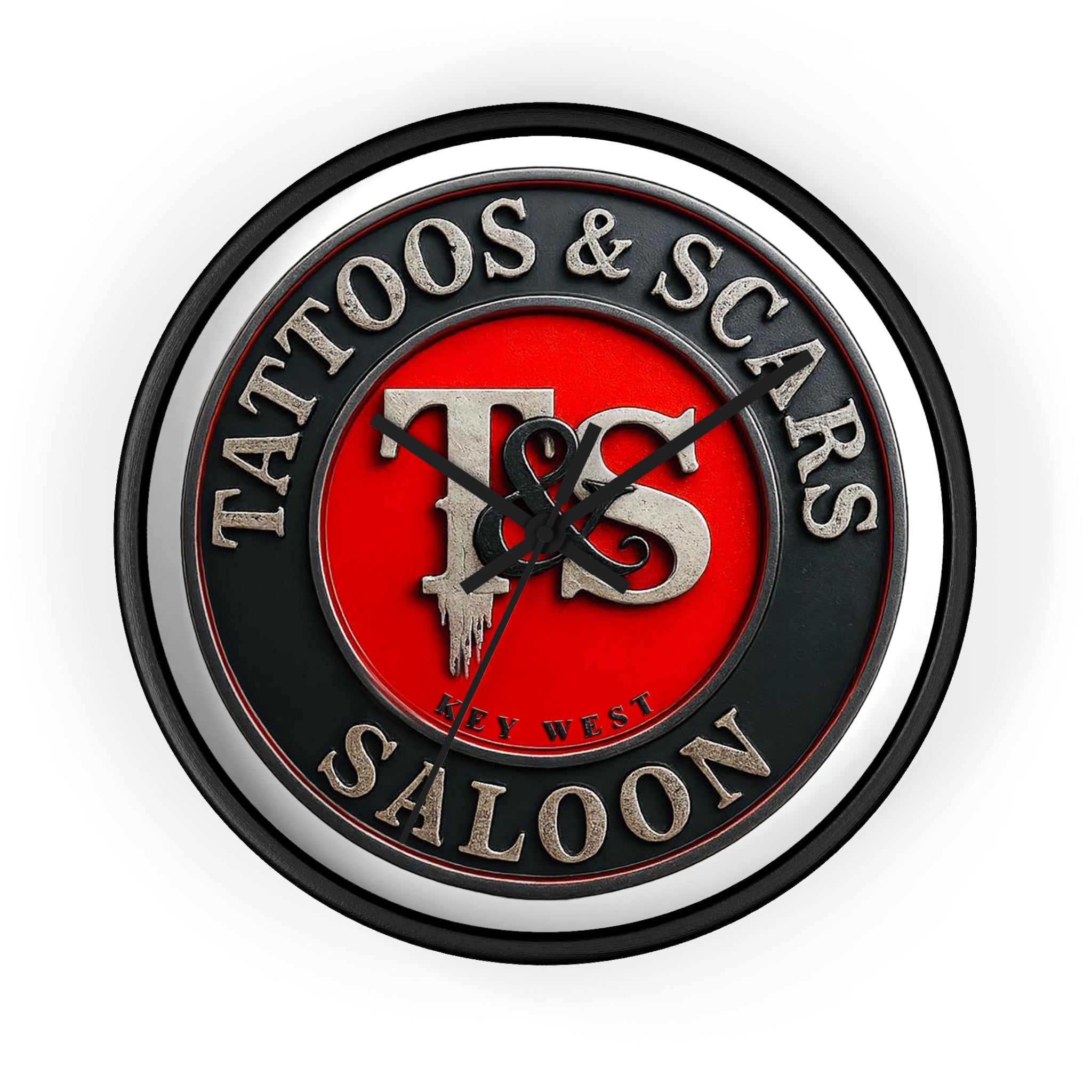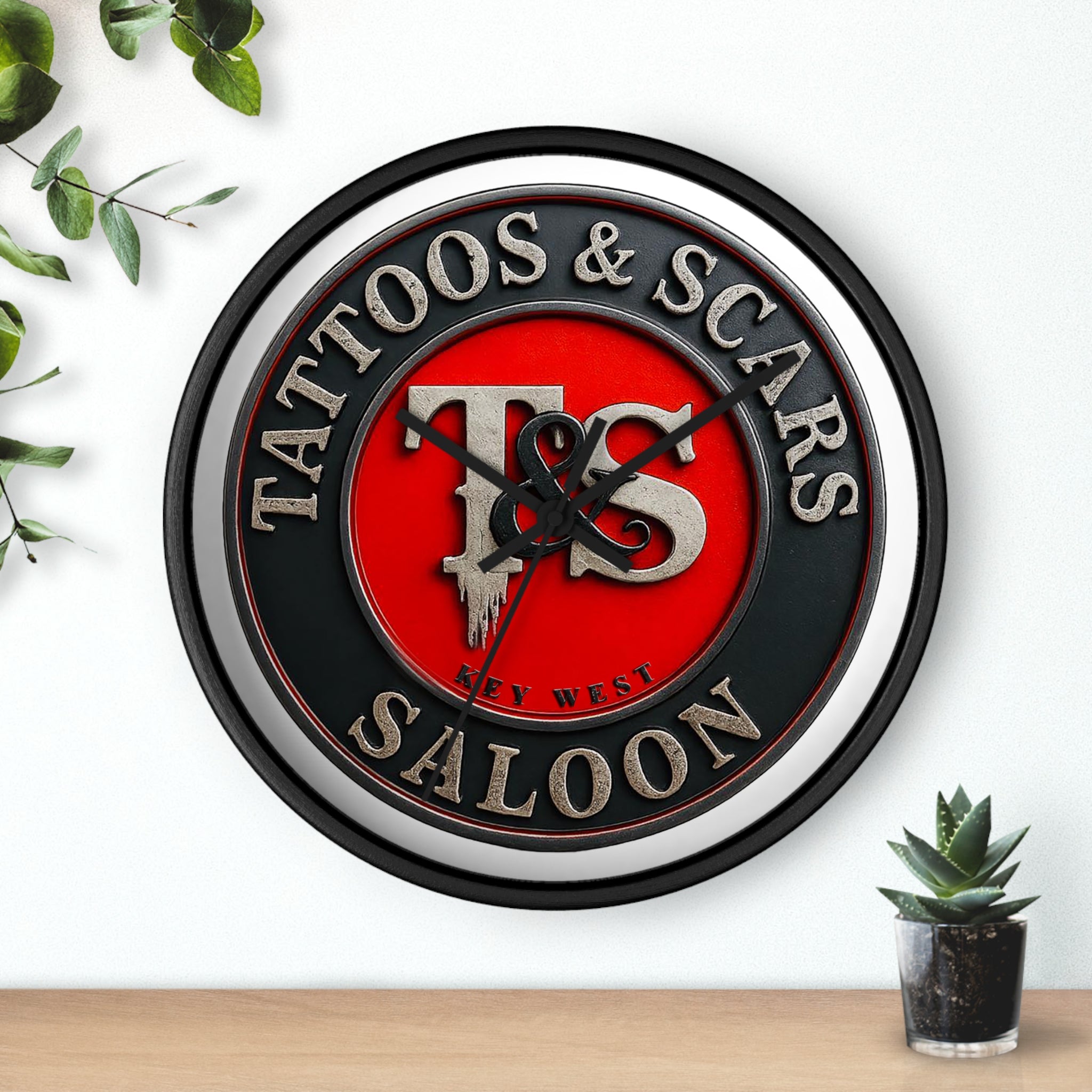 Every second counts! A practical accent in any room, this unique high quality Tattoos & Scars Wall Clock serves as a statement piece, creating a Key West bar environmet.